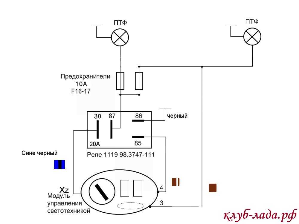 Применительно к продукции проводки АвтоВАЗа схема подключения противотуманных фар на Калине подразумевает их установку в переднем бампере: