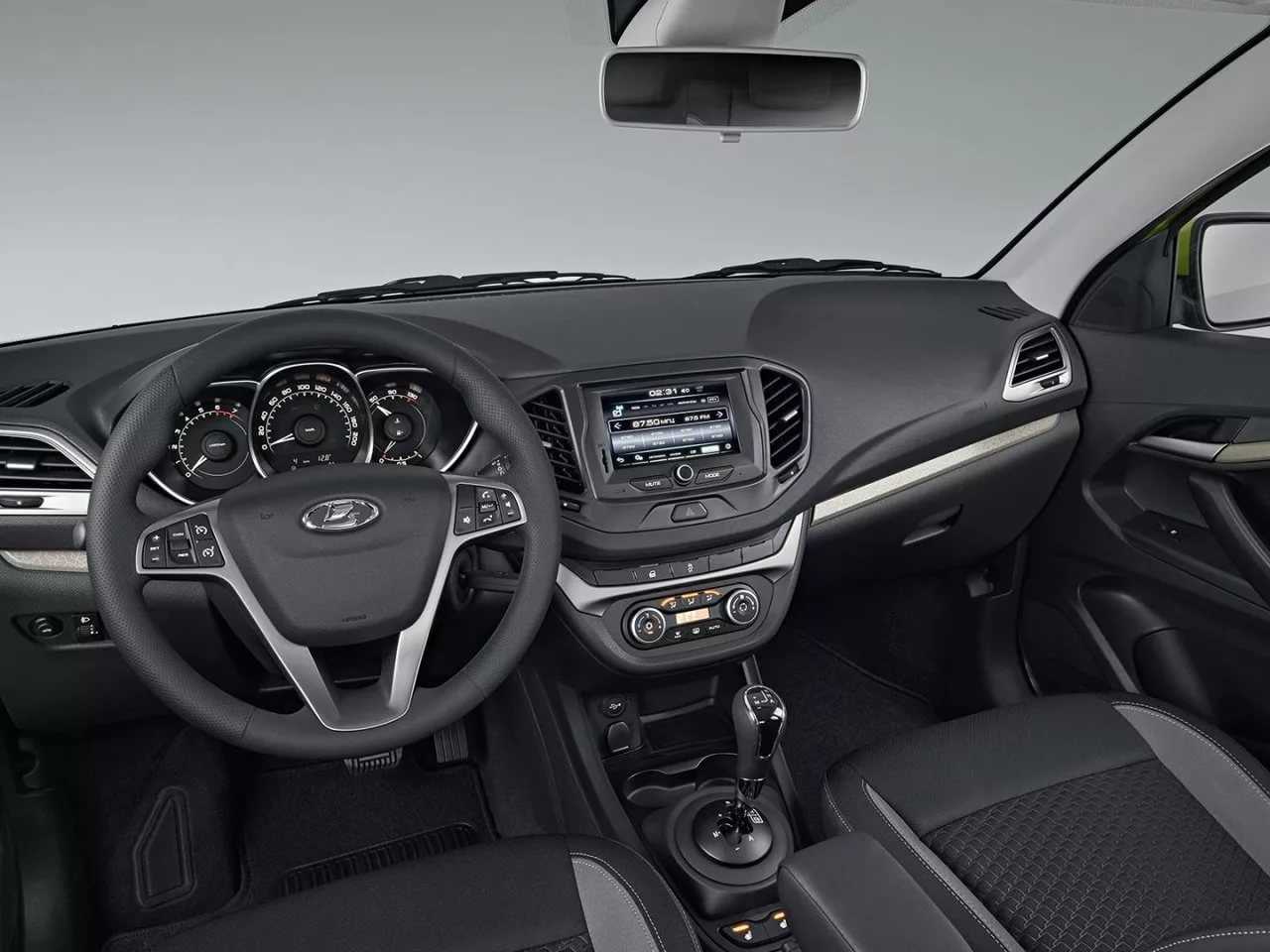 В отличие от обычной Весты, в салоне установлен не рычаг КПП, а селектор выбора направлений движения — вперед и назад.