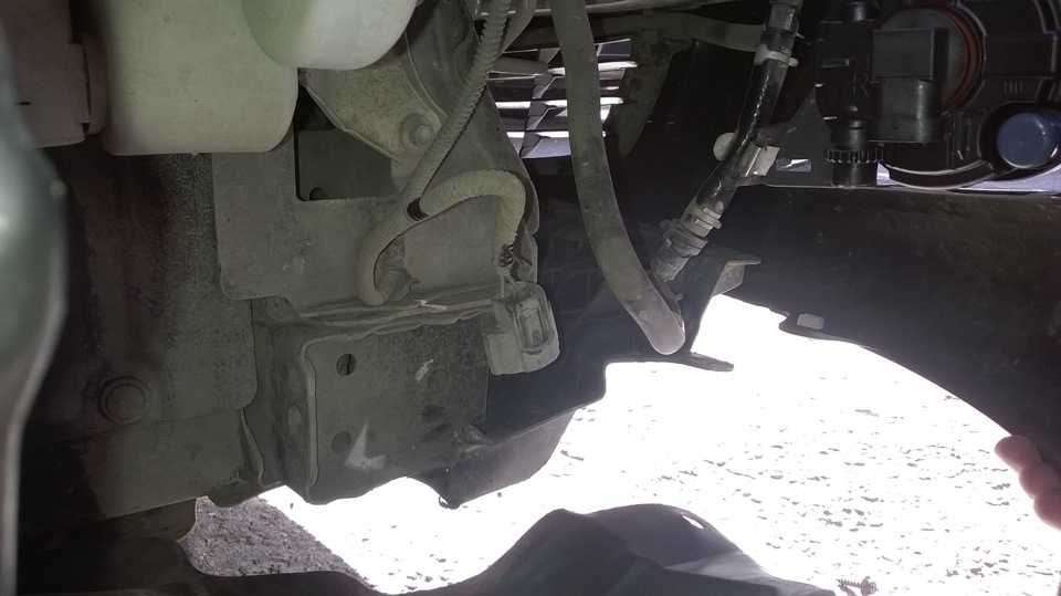 2 болта-самореза снизу в подкрылок, 2 пластиковой клипсы с торца бампера и выдергиваем его с крепления под крылом.На лонжероне сразу видим пустую колодку, смотанную изолентой. Это и есть проводка под туманки.