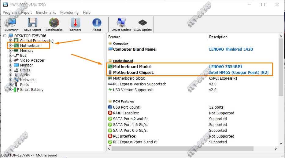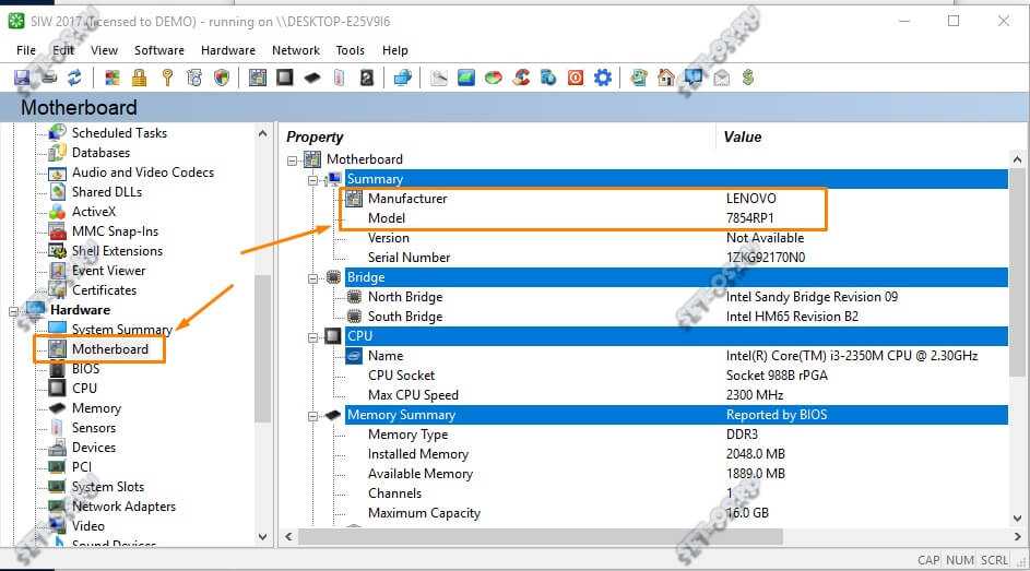 Отличное бесплатное приложение, которое предоставляет детальную информацию по устройствам ПК. Чтобы определить модель материнской платы компьютера, Вам надо открыть раздел Hardware >> Motherboard