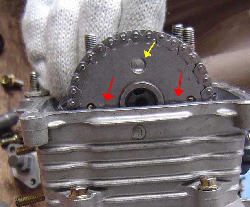 Нужная метка похожа на букву «Т». В таком положении поршень находится в мертвой точке. Это крайнее положение, после которого поршень будет возвращаться обратно. Нужно вращать ротор до тех пор, пока выступ на картере и буква «Т» не совпадут. Делать это можно при помощи рук или кик стартера. Электростартер не нужно использовать.