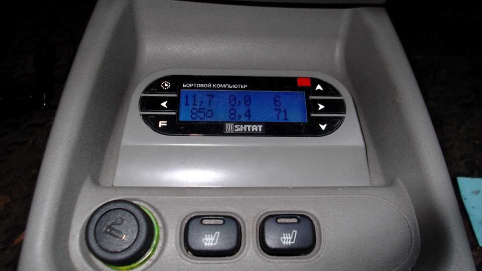 ЖКИ бортового компьютера расположен на приборной панели и содержит две строки: