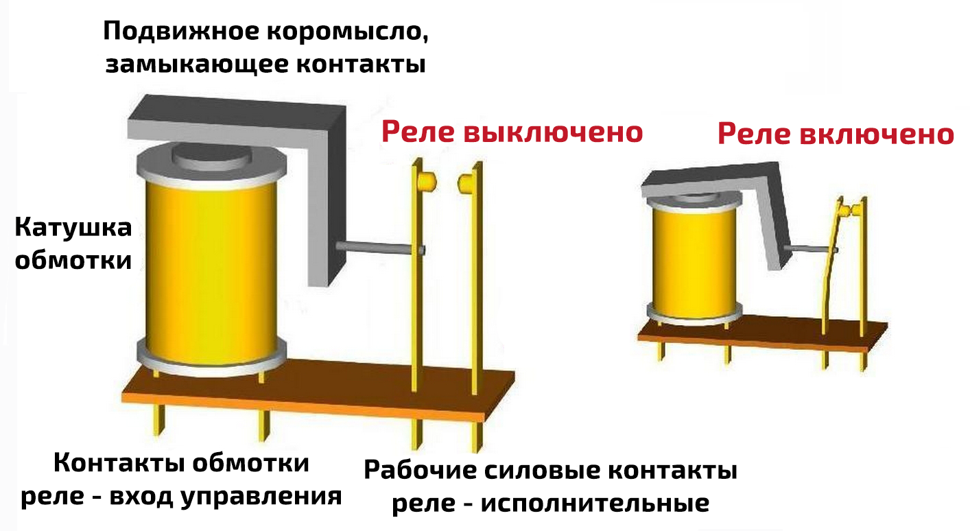 Что может случиться с реле в принципе, из-за чего оно перестанет коммутировать силовую цепь (от аккумулятора): могут обгореть контакты внутри реле из-за искрообразования, во-вторых: плохой контакт между клеммами и ножками реле и третье, что нужно будет проверить — уровень напряжения на управляющей цепи (напряжение, которое заставляет контакты реле притягиваться). На картинке выше показан принцип работы реле, на картинке ниже показаны номера контактов реле и электрическая схема.