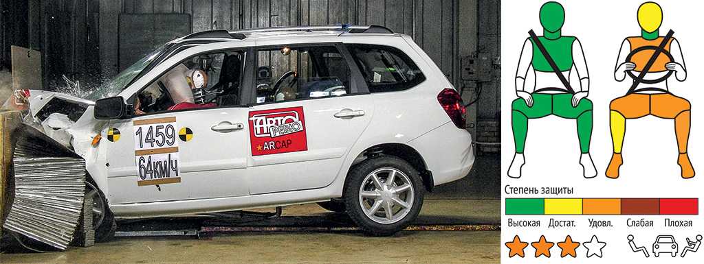 Не так давно то же издание провело краш-тест самой дорогой Лады Калины 2 – в комплектации люкс. Кузов был выбран универсал, в вариации кросс. Модель оснащалась и преднатяжителями ремней безопасности, и двумя подушками спереди. По результатам фронтального удара было выявлено повреждение дверного проема, подушки безопасности сработали идеально, а более качественный пластик передней панели смягчил удар, снизив возможность получения травм ног водителя и переднего пассажира.