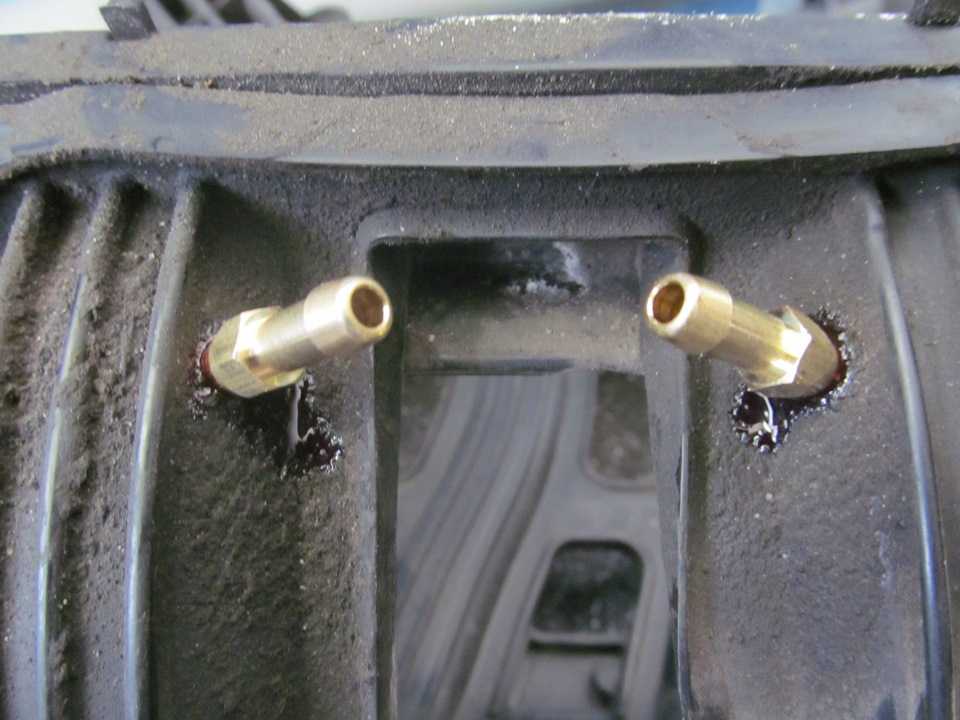 Просверленное отверстие проходим метчиком М6 не забыв при этом выдуть стружку внутри коллектора. Далее устанавливаем штуцера подачи газа, применяя при этом «фиксатор резьбы» и даем некоторое время для схватывания резьбы.