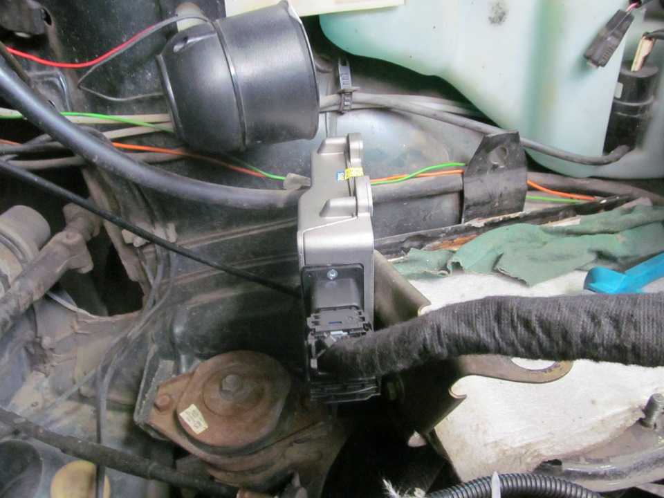 Теперь ГБОшные мозги имеют контроль над бензиновыми и может их включать и отключать когда ему это надо. Мозги спрятал за АКБ. Пристегнул к тросу капота и шланга от бачка СОД. На 21124 так же было. Можно сказать там же висела за АКБ.