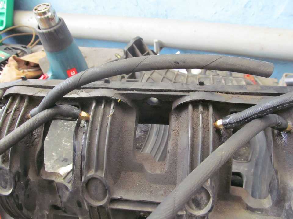 Подсоединяем газовые шланги от коллектора к газовым форсункам и ставим на место впускной коллектор.