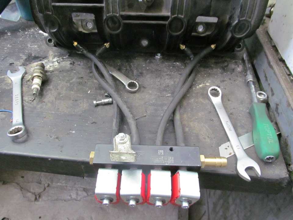 желательно делать трубки покороче и к штуцерам от форсунок и от редуктора к рампе(вокруг всего мотора обвели, ну это лишнее) можно рампу чуть ниже опустить укоротив шланги, и на рампе штуцер перекрутить на другую сторону и завести со стороны акума трубку, будет намного короче! и датчик PS-02 поставить как можно ближе к рампе форсунок(в идеале впритык на коротком шланге)