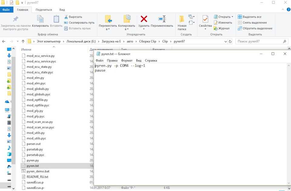1. Запускаем pyren.bat (убедитесь, что в файле прописан COM-порт вашего адаптера)