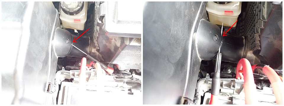 Дырявим резинку и удочкой вытягиваем провода под приборку. Из-под панели резинку удалось проткнуть более-менее аккуратно, а под капотом удочка просто отогнула нижний край резинки. Да и пофиг.