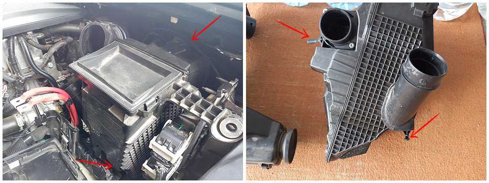 В связи с некоторыми сложностями у других, со снятием воздухозаборника и корпуса фильтра, ниже дополнил «мануал» еще одним решением от Megavolt-143 .…потом я понял, что на самом деле всё очень и очень просто. Не нужно было расчленять именно в этом месте. Нужно было всего лишь вытащить фильтрующий элемент и изнутри корпуса фильтра, буквально в 5 секунд, выщелкнуть тот патрубок, который, у тебя на фото, справа от кончика стрелки. Воздухозаборник вытащится с ним…
