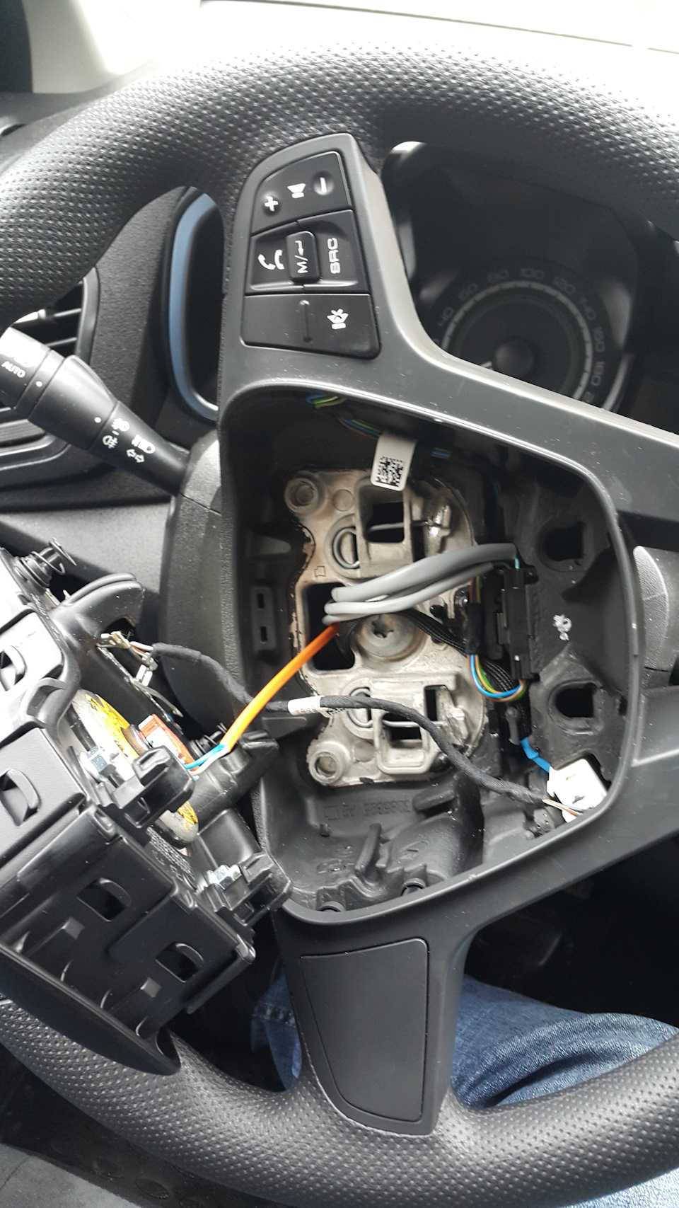 В более простых комплектациях в подрулевом переключателе (улитке) может не оказаться необходимых проводов. Меняем его на другой (8450020003). Также потребуется протянуть 4 провода до колодки с проводами ЭБУ (из салона в моторный отсек через отверстие с тросом для открытия капота):