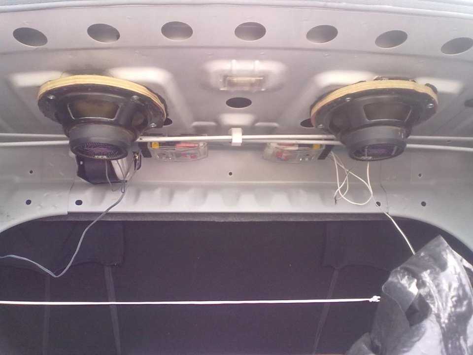 Задние динамики автолюбитель может выбрать компактные или увеличенные. В последнем случае их встраивают в полку багажного отделения. Защищают диффузоры при таком расположении оригинальные сетки — их предлагает автозавод.