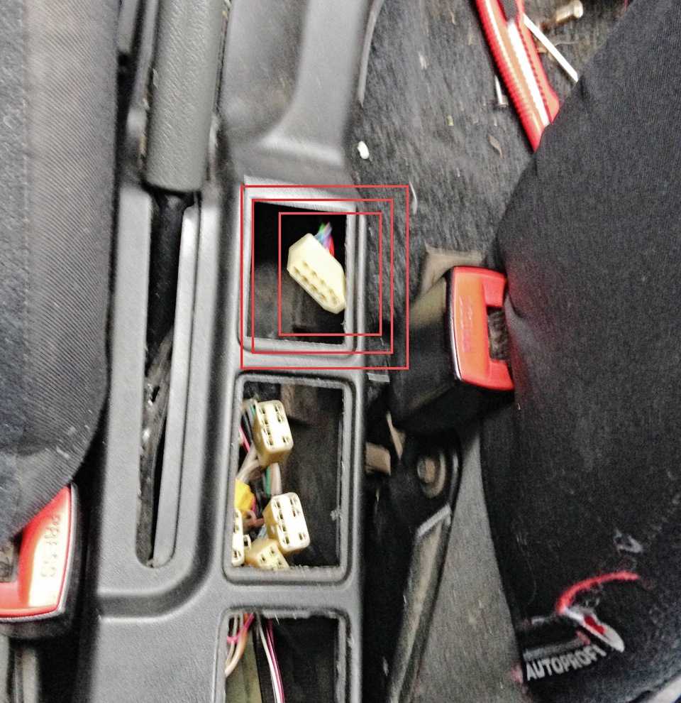 Для начала, я разобрал центральный тоннель. И вот, каждый раз, когда я его разбираю, я добрым словом вспоминаю того, кто придумал сделать саморезы по бокам этого самого тоннеля!Затем я проложил проводку к джойстику (отметил красным):