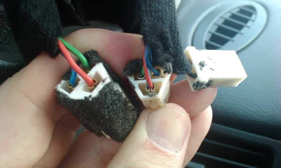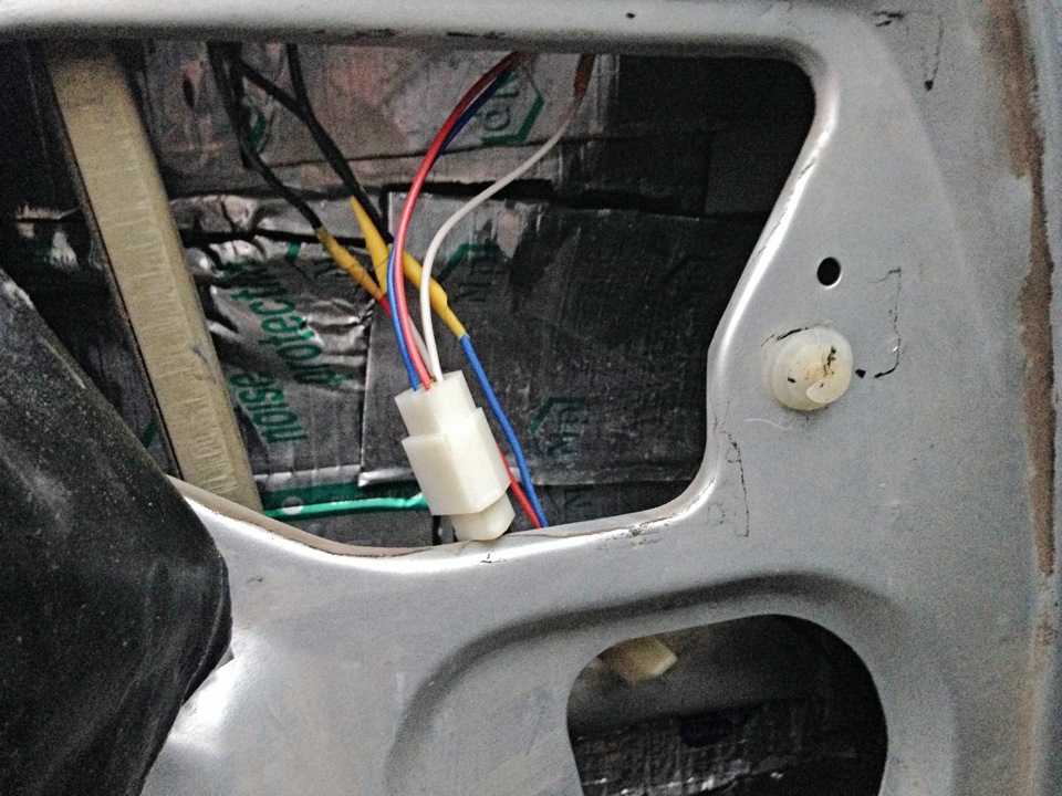 Намного удобнее вынуть всю проводку из двери и просунуть все через прямую гофру, а затем заправить все в дверь. С правой стороны делал так же.Для удлинения проводов, я напаял кусочки к зеркалам, вместе с разъемами старого образца.Фото, к сожалению, не сохранились.Затем я все подключил в дверях: