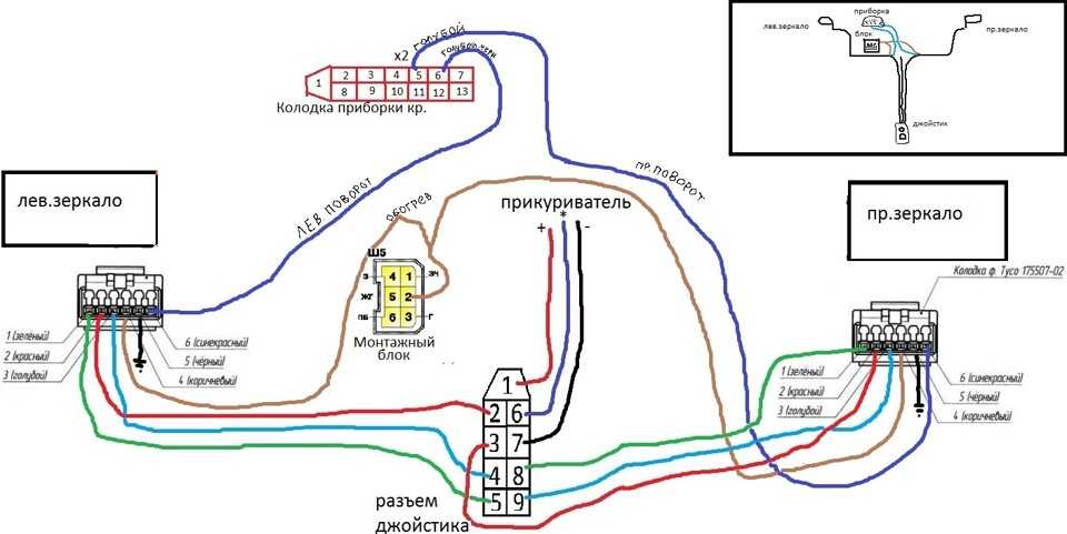 Мне понадобилось крепежных винтов — 6 шт.Блок управления зеркалами — 1 шт.Провод монтажный у меня сечения был только 0.75мм, но можно и меньше 6 кусков по три метра (желательно разноцветного.клемы монтажные
