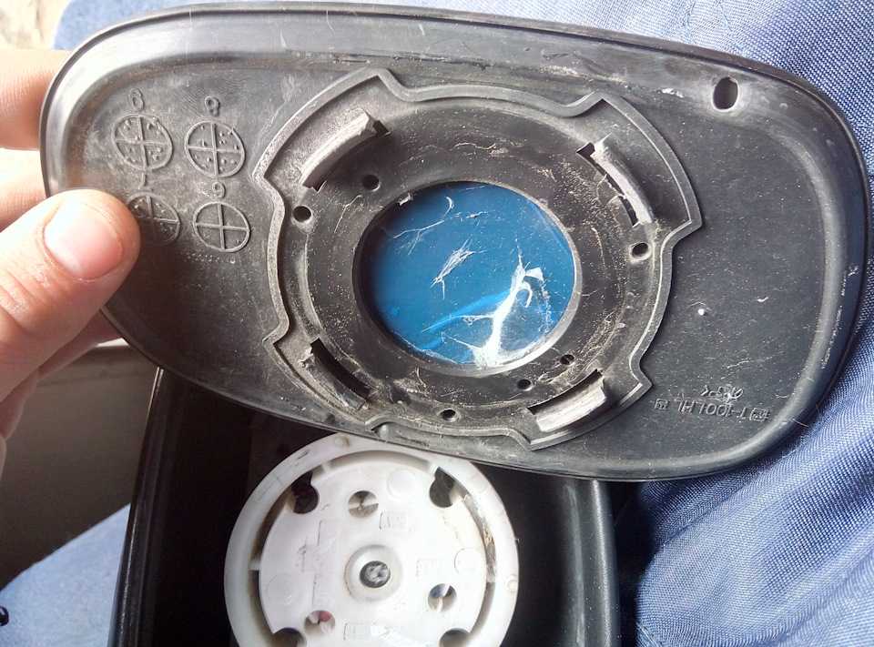 Аналогичную операцию произвел со следующим зеркалом. Читал на форумах что зеркала лопаются, но у меня почему-то все остались целыми.Далее установил новенькие зеркала, протянул провода, надел на регулировочную пластину и резким нажатием на центр надавил до щелчка.