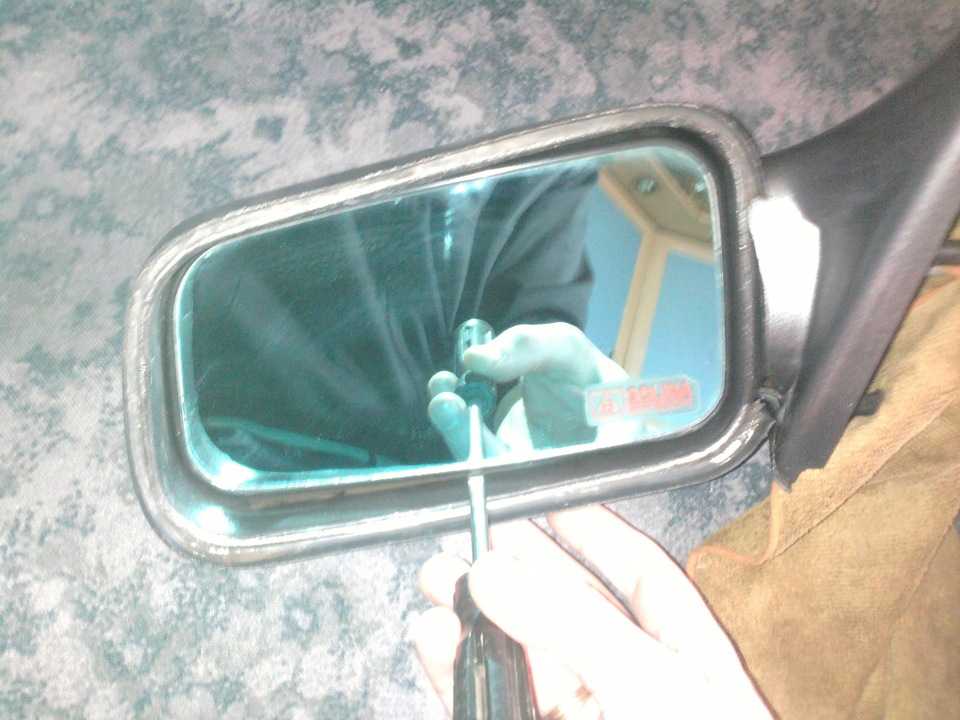 3. Когда достанете зеркало, надо отклеить зеркальный элемент от его пластикового корпуса, главное разогреть его и все снимается как по маслу. Я грел феном и считаю это самым правильным, многие у кого нет фена, греют зеркало в кипятке, считаю это неправильным, ведь потом собирать и тоже греть в кипятке зеркало с пластиком, на котором остался герметик, потом на мокрую этот герметик не прилипает к зеркальному элементу.