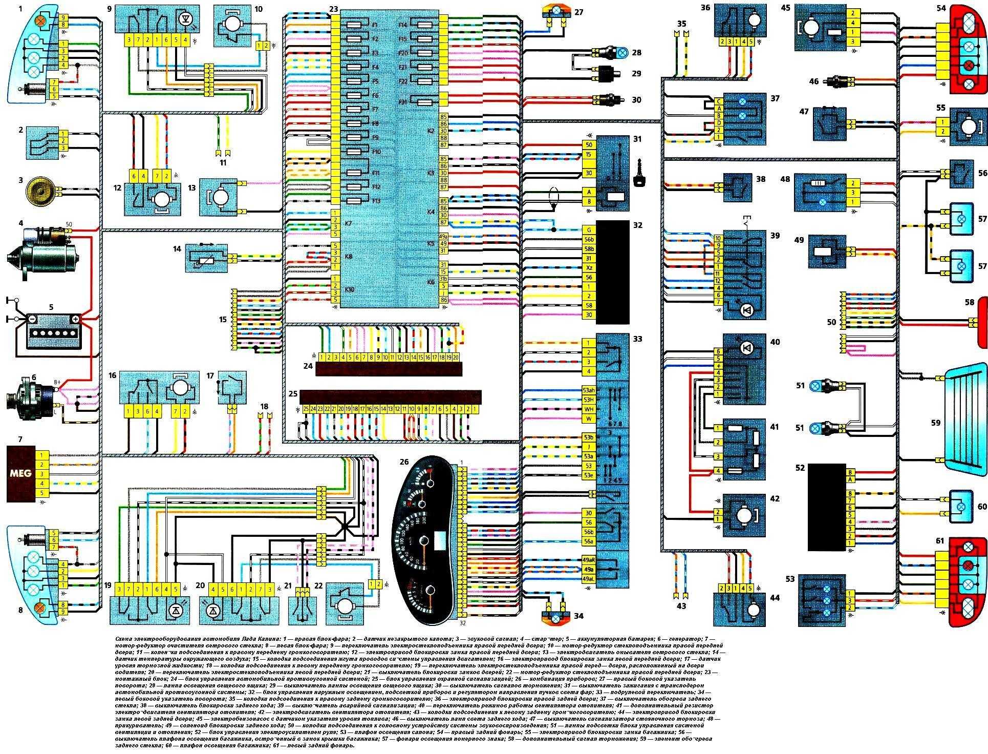 В общую карту входят не только передняя и задняя часть авто, но и электросхема приборной комбинации, а также системы зажигания.