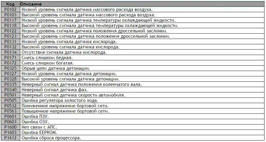 Расшифровка кодов ошибок ЭБУ (бортового компьютера) ВАЗ десятого семейства