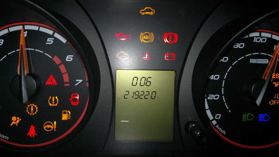 Что делать для устранения неполадок? Следует, удерживая клавишу, включить зажигание, но авто не заводить. Стрелки на приборной панели будут двигаться, включатся лампочки. После этого нужно нажать одну из клавиш на переключателе, который находится под рулем. Потом стрелки будут на начальном положении, на дисплее будут отображены ошибки.