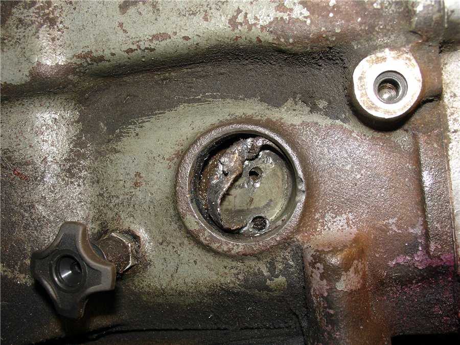Случилось неприятное. Поездил с рыжим (ржавым) тосолом. Проржавела заглушка на блоке цилиндров, та что под кожухом ремня ГРМ находится. Потек ручьем тосол. Необходимо менять заглушку. Как вытащить старую?