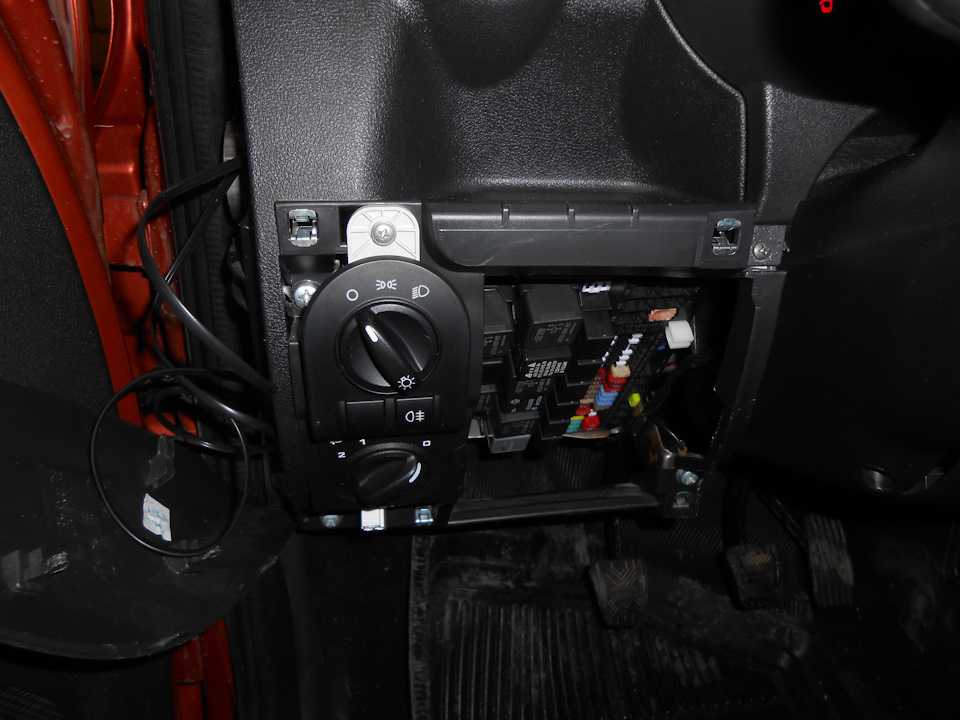 Далее нужно провести провод от датчика через потолок и накладку стойки к блоку предохранителей